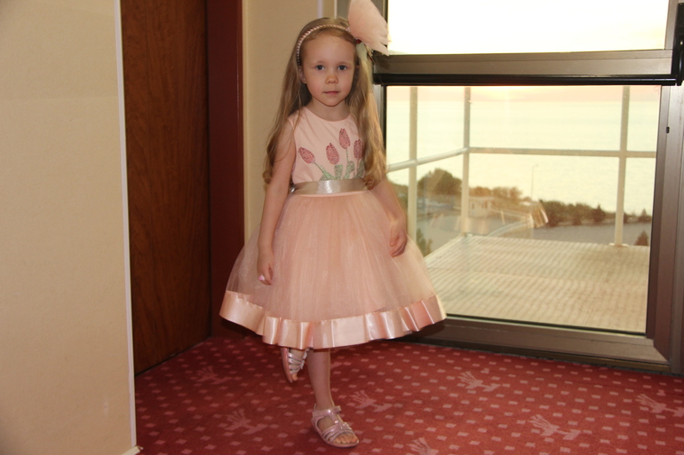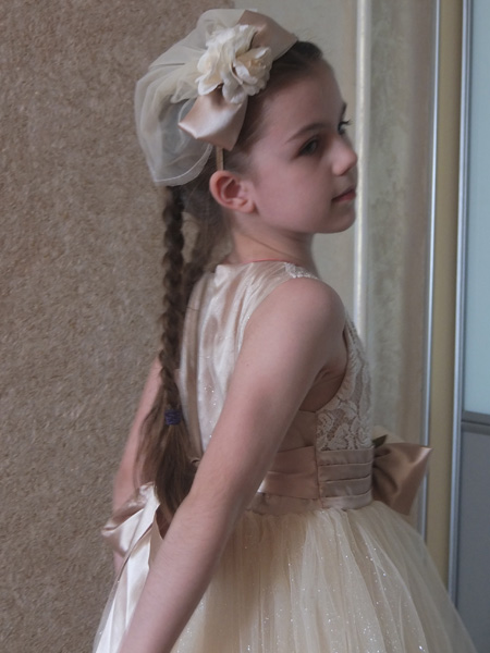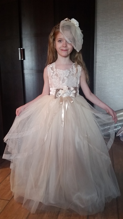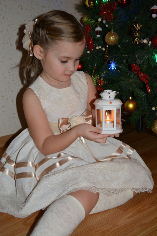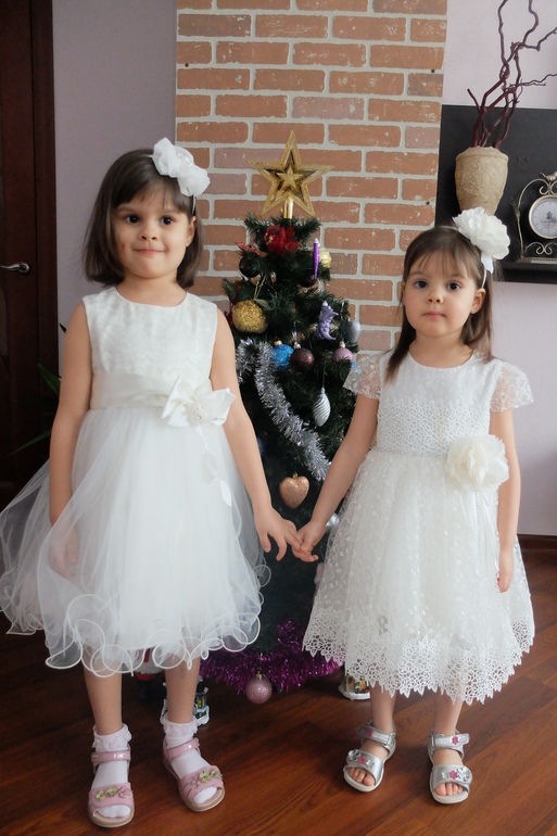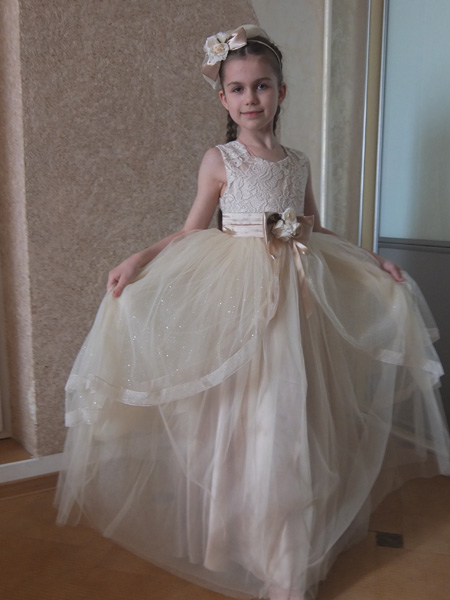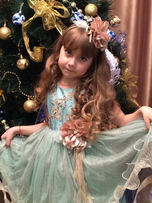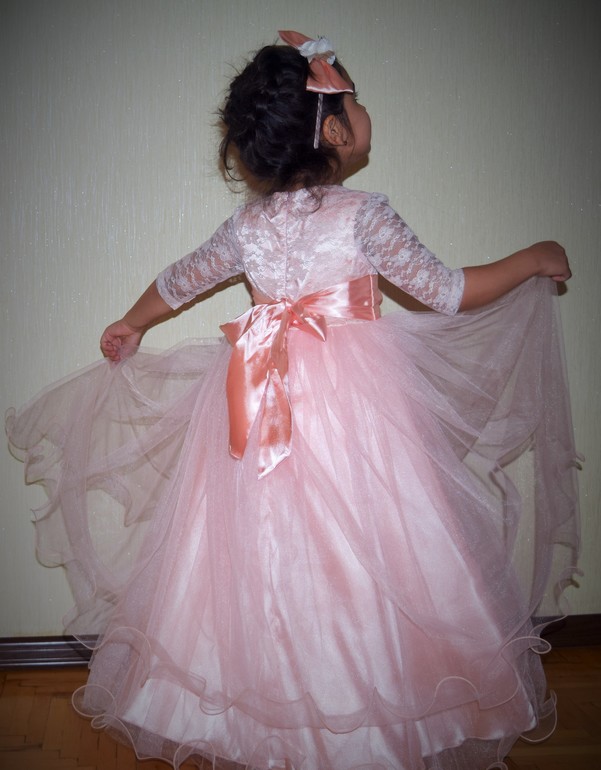 Люда, спасибо огромное за платье!!! Даже не представляю, сколько будет стоить в магазине платье такого уровня. Все супер! В реале платье оказалось более нежным, чем я ожидала, что нам, в принципе, и было нужно :-) Сфотографировались на скорую руку, поэтому без изысков :-) Но платье реально супер-класс!!! Уверена, что на елке она будет самая-самая) Размер 8, рост ориентировочно 125 см + небольшой каблучок. Платье в пол.