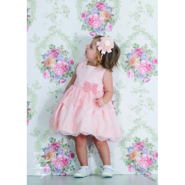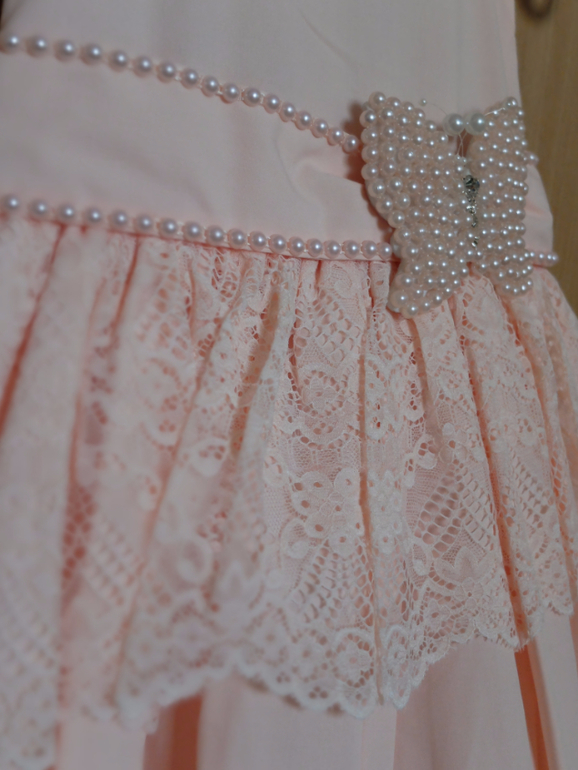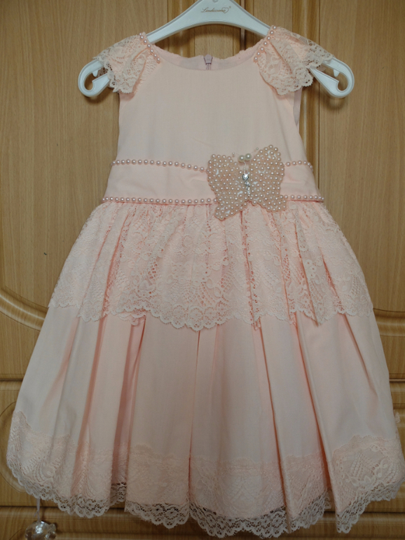 АРТ 1503. Не зря эта моделька идет в размерном ряде от 1 до 5 лет. Особенно в 1 и 2 года, когда малышки очень чувствительны к искусственным тканям и ещё не слишком уверенно передвигаются этот вариант, мне кажется, идеальным! Платье хлопок и внутри и снаружи, то есть в нем ребенку очень комфортно, кроме того оно не порвется если малышка неудачно зацепилась, как это может быть с тюлевыми юбками. И при этом оно очень нарядное, праздничное - кружево, бусины под жемчуг. И очень очень приятный нежный цвет - что-то между розовым и персиковым.