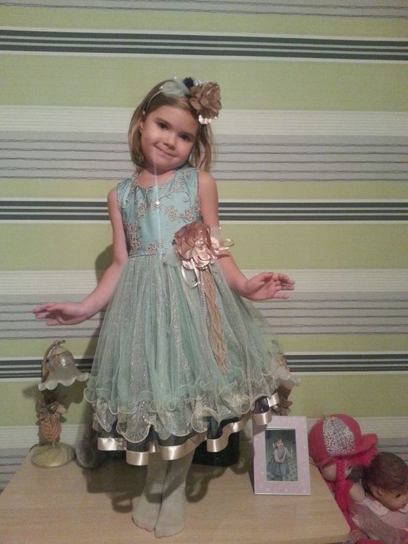 Люда, спасибо большое за чудесное платье! Брала дочке на 6-тилетие. День рождение Русалочка. Платье идеально подошло под нашу тематику. Качество на высоте! Цвет наш любимый! Модель очень стильная со шлейфом! На выпускной тоже взяли подобную модель. Размер брали 6 лет.. Думаю можно было и 7 лет брать) В общем блистали))