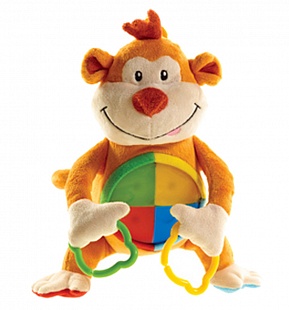 Мягкий коврик с дугами изготовлен из безопасных гипоаллергенных материалов, не имеет мелких и выступающих элементов. Музыкальная обезьянка с сенсорной панелью на животике включается от прикосновения (ребенок тянет или ударяет по игрушке), светится и проигрывает три мелодии.