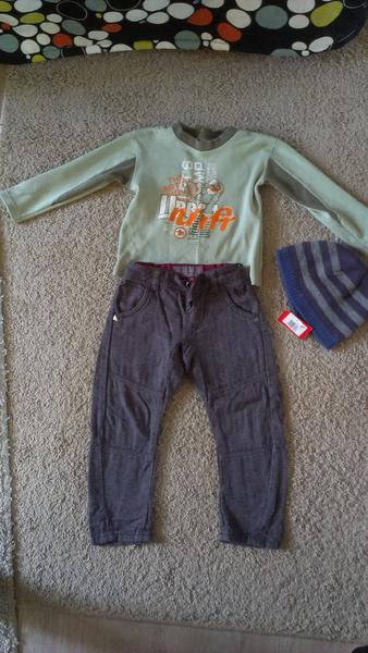 Все в отличном состояние. Шапка новая, брючки стильные, оригинальные. Размер 92-98 см