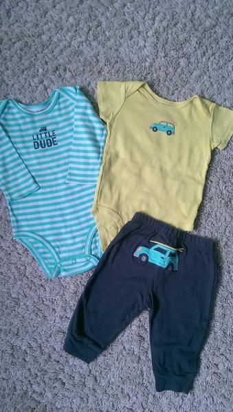 1.Комплект Carters три предмета, размер 6 месяцев, цена 200 рублей за все.Состояние хорошее.