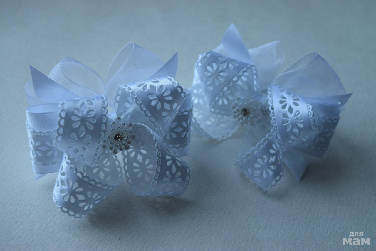 12) Нарядные бантики. Очень неожиданное было решение соединить органзу, атлас и декоративную ленту, но я результатом довольна! Люблю все из серии "ни как у всех". Бантики сделаны на заказ