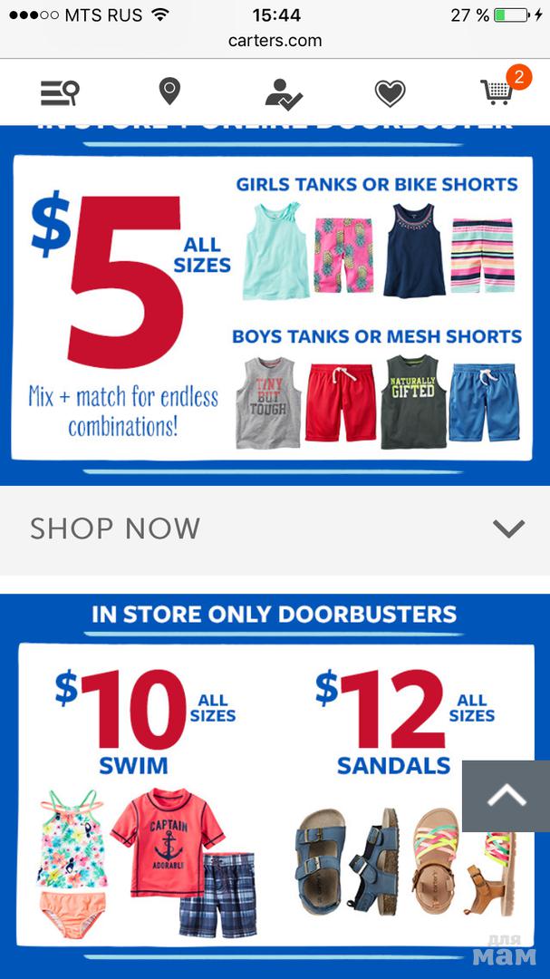 Вечером 21.00 отправляю Carters.com доп -30% на раздел Clearance!!! На основную коллекция -20% от цены сайта от 40$