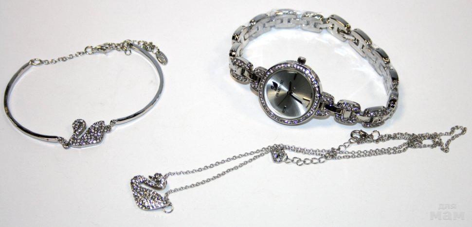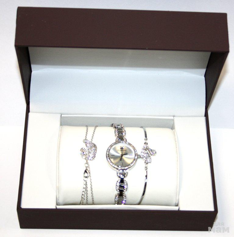 Набор 3 предмета в подарочной коробке. (Часы, подвеска, браслет)Swarovski