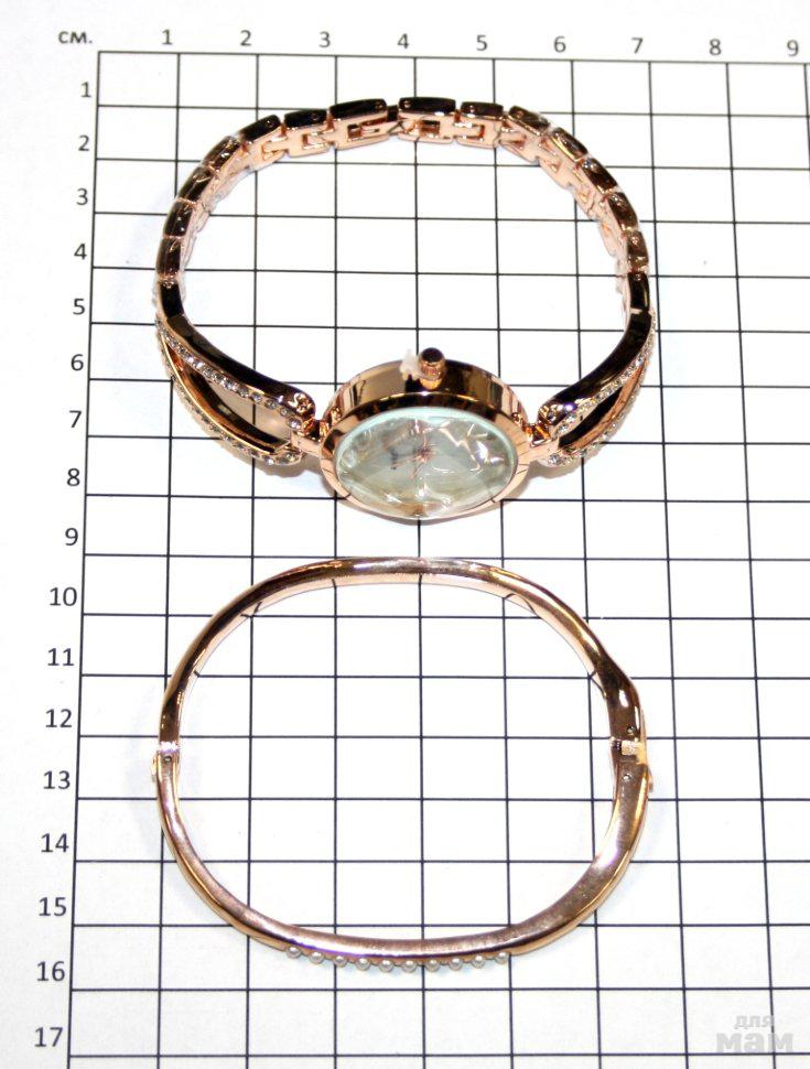 Набор изготовлен из стали с гальваническим покрытием. Диаметр браслета 7см. Диаметр циферблата на часах 2см. Механизм кварц. Браслет регулируемый.