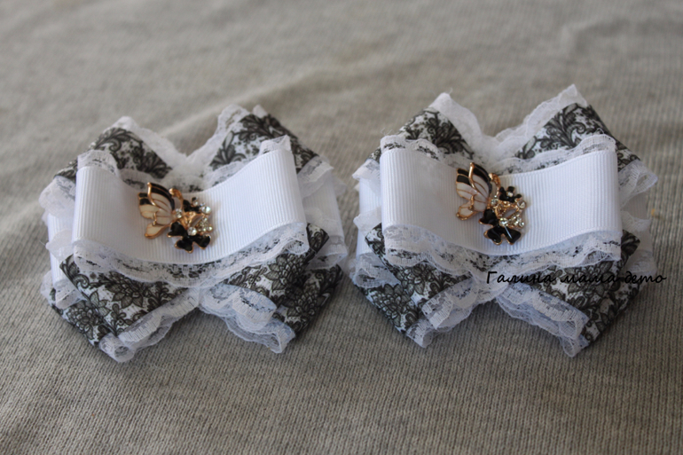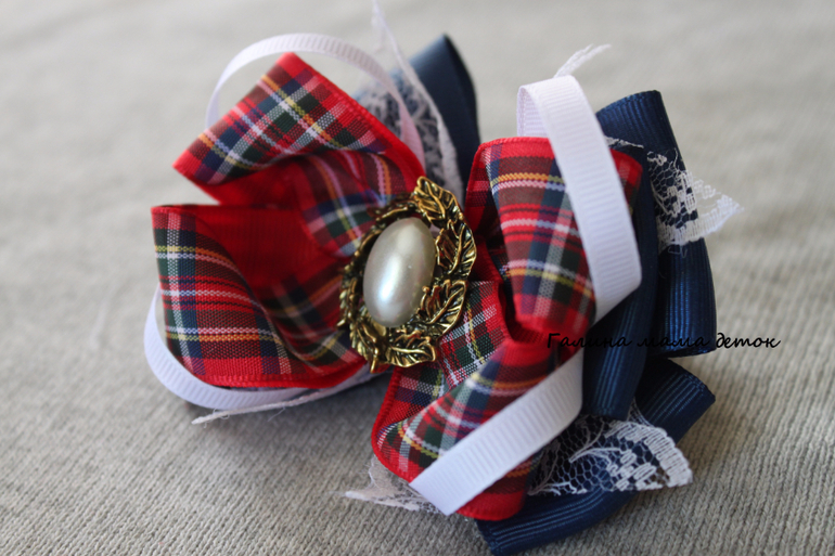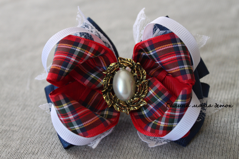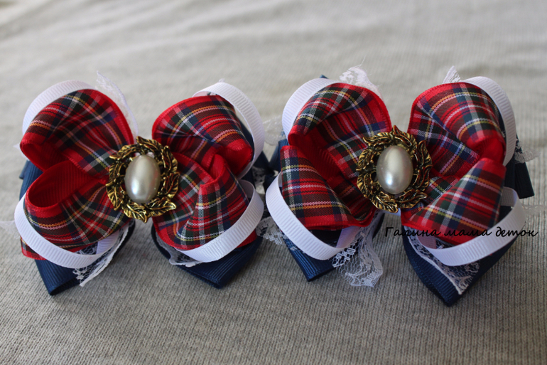 бантики с красной клеткой и ювелирной серединкой в античном стиле