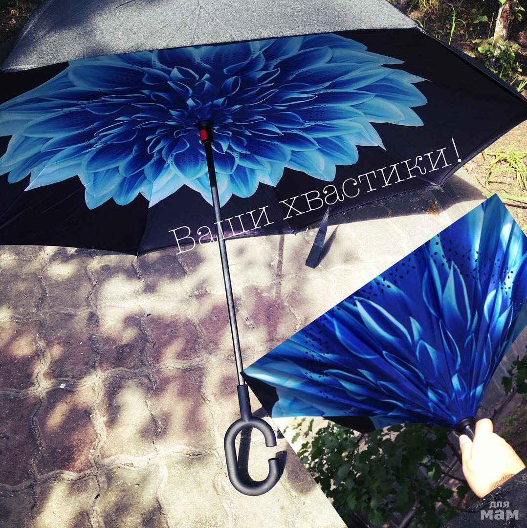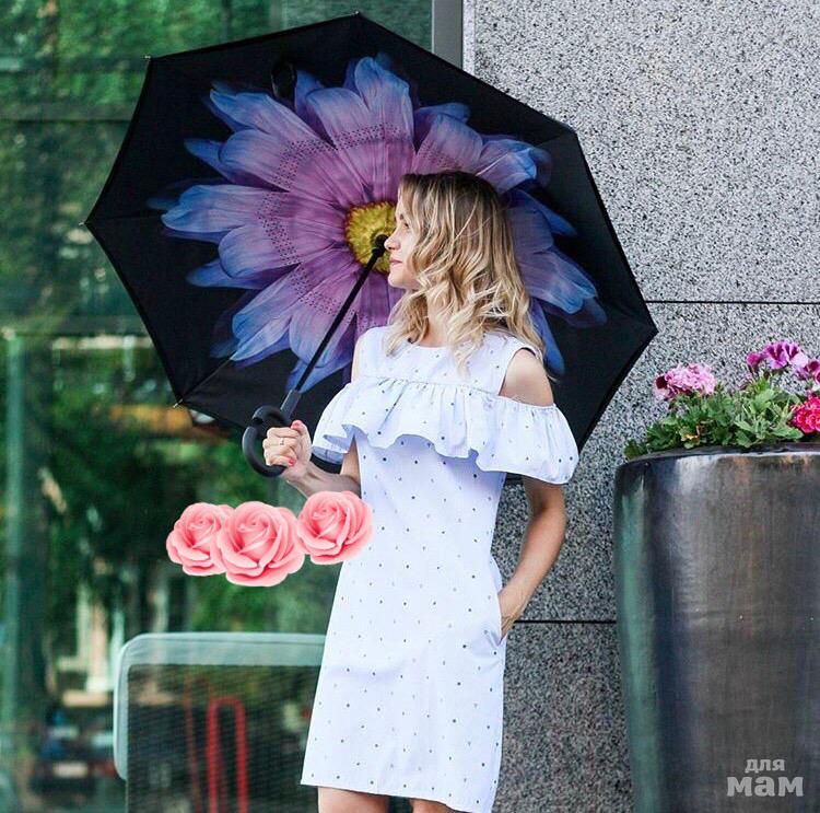Зонт-наоборот — неординарный зонтик, который останется сухим после дождя, так как складывается наизнанку (наоборот), мокрой стороной внутрь.