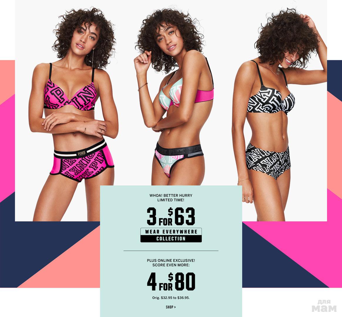 Коллекция PINК предлагает акцию на бра 2 за 48$ 3 за 63$ 4 за 80$