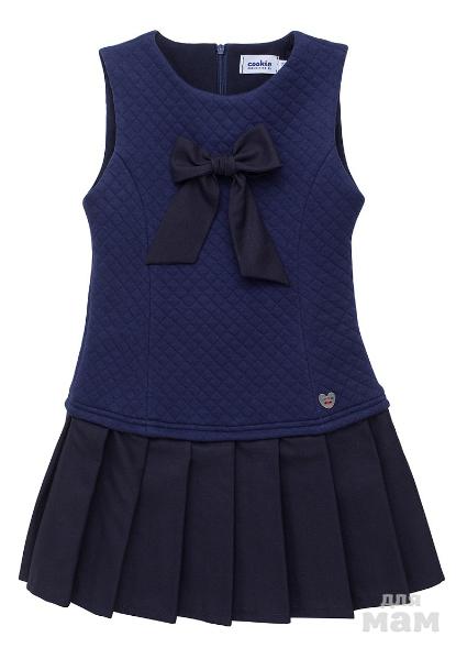 Необыкновенно комфортный сарафан, выполнен из футера, стёганого в ромбик, синего цвета. Украшен бантом на груди и маленькой металлической пуговичкой "Cookie" по низу лифа. Юбка сарафана в складку из полушерстяной высококачественной ткани тёмно-синего цвета. Сарафан очень приятный на ощупь. Верх - хлопок 80%, полиэстер 20%; юбка - шерсть 45%, полиэфир 55%.