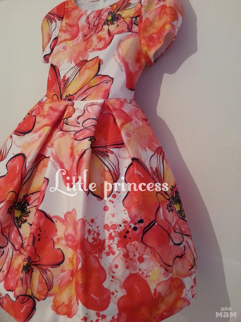 Платье "Цветы". Яркое, с пышными подъюбником, хлопковый подклад.