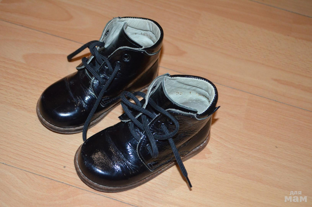 2. Ботинки черные лаковые кожаные Котофей, 22 размер, стелька примерно 14 см (стелька не съемная тяжело точно измерить), внутри тоже кожа - 500 руб.