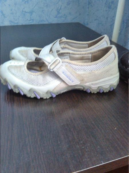 Продам скечерсы, размер на ногу 36, стелька 23.5, на коробке размер стоит 36.5. Черные за счет резинки точно подойдут на размер 36.5. Светлые все же на 36,на ногу побольше будут жать (я думаю). Состояние черных отличное, светлые немного запылились и спереди немного отходит подошва на носке (на последнем фото видно). Черные отдам за 700, светлые за 500, за обе пары 1000. С почтой дружу.