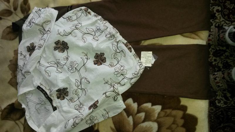 Костюм новый из натуральной дышащей ткани. Состав и цену сфотографировала. Отдам за 700 руб.