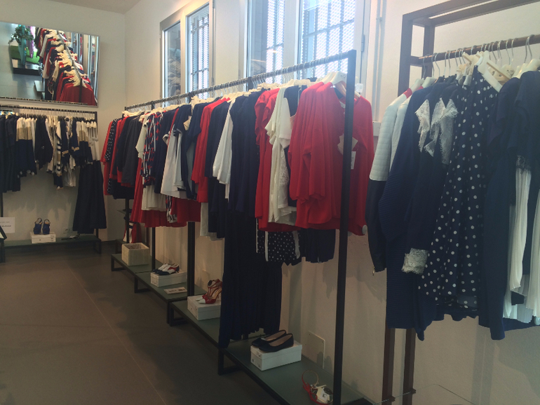 БЛУЗКА СИНЯЯ 117 ЕВРО, ПЛАТЬЕ КРАСНОЕ 136