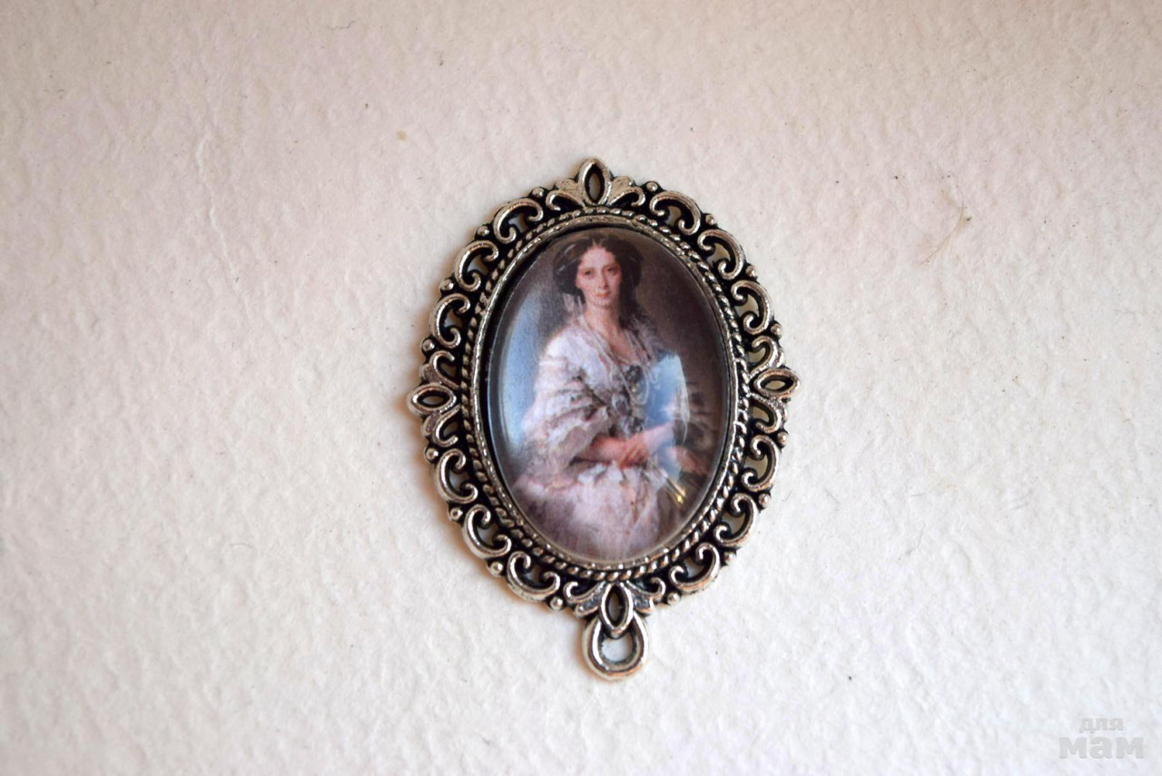 И выбирали мы фон на кабошон. Остановились на Париже. Но есть еще вот такая пушкинская барышня. Было три. Одна уже поселилась на галстуке, в спешке даже не успевала все фотографировать, а две остались. Одна из них вот. Так в чем вопрос. Может кому оставить? Пока у меня магазин их не позвал.
