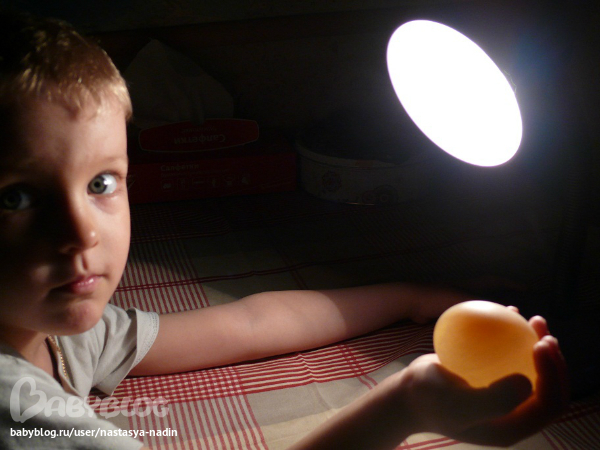 Положили мы вчера вечером с Димкой в стакан с 9% уксусом столовым - яичко.