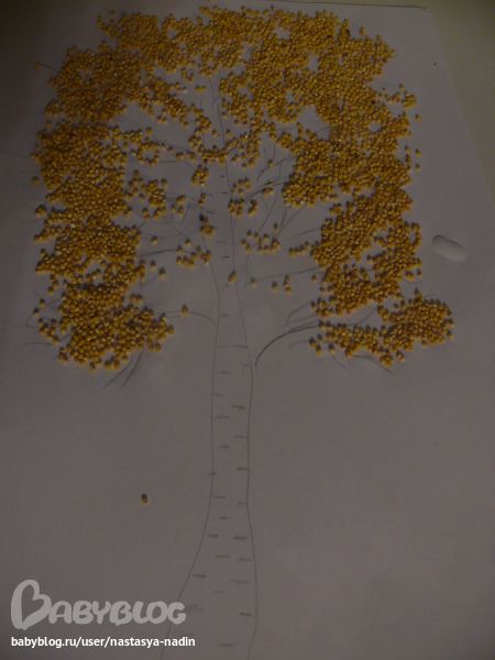 5 октября 2012на клей ПВА сыпал пшено, вот и дерево! Очень красиво получается, но березу нужно было фломиком нарисовать(
