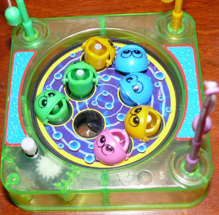 заводишь рыбок - они то откроют рот, то закроют - нужно поймать удочкой - на магнитах