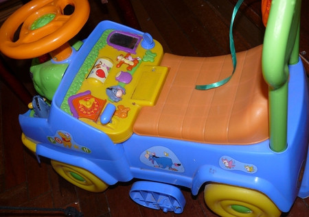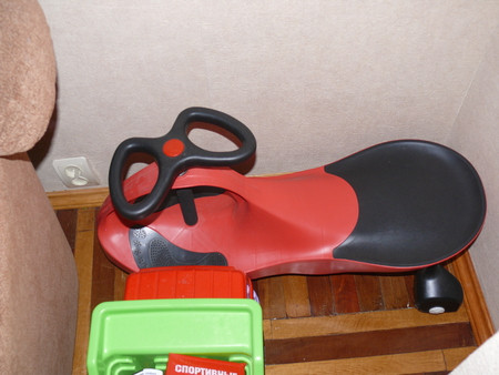 любимая машинка - начали в ней качаться как только сели - к ней еще приделывается качалка и ободок вокруг сиденья - была в восторге когда начал ее заводить поворотом ключа