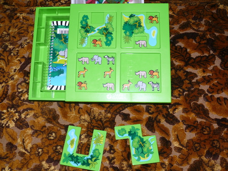 прячем животных - правда игрушка для более старших детей - но и он там что-то пытается