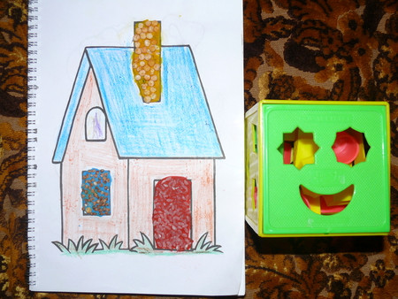 раскраска с крупными рисунками - очень их там много и решили пластилином раскрасить и гречкой, рисом и горохом