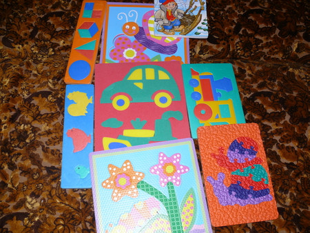 на мелкую маторику - вытаскиваем и вставляем фигурки и цифры - оч нравится цифра 10 как звоночки вставляем-нажимаем + божьи коровки - собираем из разных частей