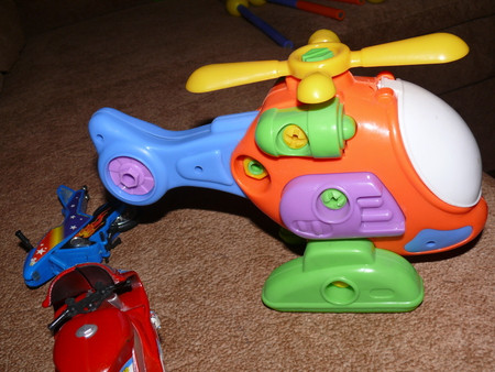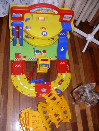 гараж - игры с машинками - а то раньше просто выстраивал их друг за другом+ собака - тоже хорошая игрушка + складывает сам рельсы для паравозика (как пазл)