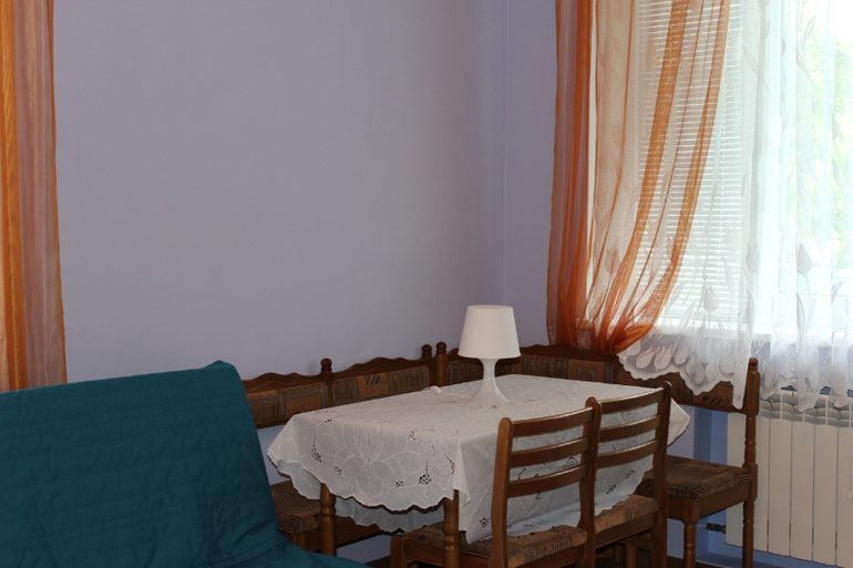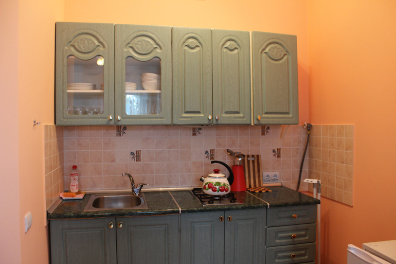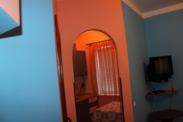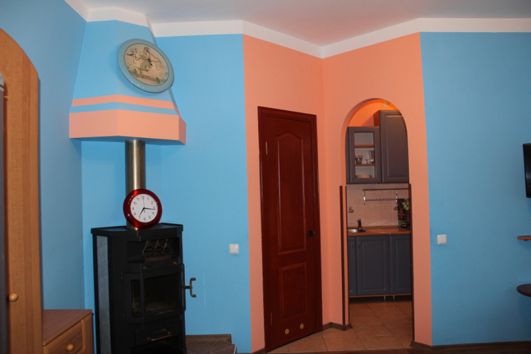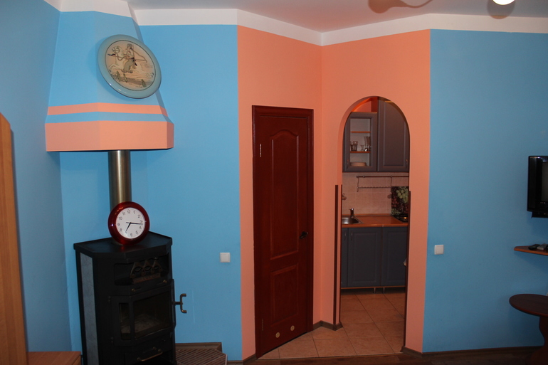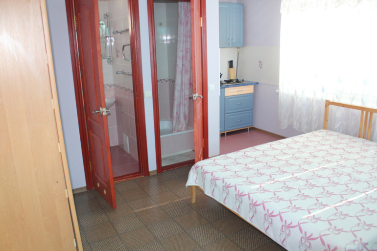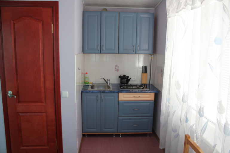 Гостиница состоит из 5 квартир-студий с кухонной зоной,общая площадь примерно по 20 м2(на каждом этаже по квартире).В номере есть кухня,санузел, спальная зона и балкон,а на 5 этаже большая лоджия-столовая..