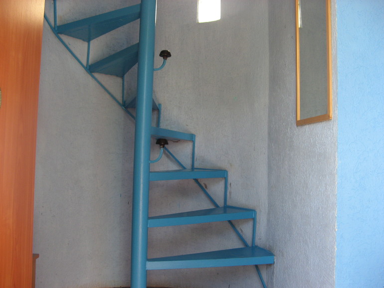 После второго этажа лестница идет внутри помещения.Лестница винтовая.