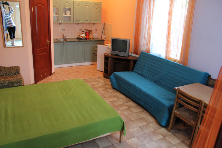 НОМЕР на 2 этаже(без балкона).Спальных мест 2+1(раскладной диван),возможно размещение два взрослых,два ребенка.