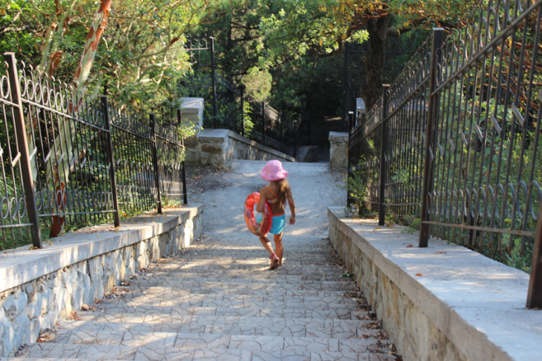 В каждом из них кондиционер,холодильник,посуда(от бокалов до кастрюль-сковородок),постельные принадлежности,холодная и горячая вода постоянно,так же свое отопление(актуально для межсезонья т.к. в Крыму очень часто даже в санаториях отключают отопление очень рано),а номера на третьем и четвертом этажах оборудованы еще и каминами(для экзотики и встречи,например, Нового года). Гостиница имеет свой внутренний дворик,на территории которого есть стол и мангал.Рядом с гостиницей есть ресторан,домашнее кафе,продуктовые магазины и мини рынок,куда привозят натуральные продукты.В паре минут ходьбы-остановка,которая называется"Метеостанция".От нее с малым интервалом отходят маршрутки до Ялты(15 мин до набережной).Рядом (примерно 1 км),сверху(важно!!!) Южнобережное шоссе по которому можно доехать практически в любое место Крыма . До моря от нашей мини гостинцы 25-30 мин. пешком(указываю реальное время для таких как я мам с детками,что бы не было недоразумения,хотя без маленьких детей я доходила и за 15 минут).Дорога состоит из живописных лестниц и дорожек,идя по которым любуешься красотами Крыма.Можно ходить на пляж и через заповедник с реликтовыми можжевельниками. Пляжи у нас галечные.В 10 минутах от нашей гостиницы находится Никитский ботанический сад,очень удобно вечерами гулять там с детьми!Можно купить абонемент и ходить в сад в любое удобное для вас время.Кстати,абонемент на год.У меня иногда получается использовать его и в начале следующего лета)