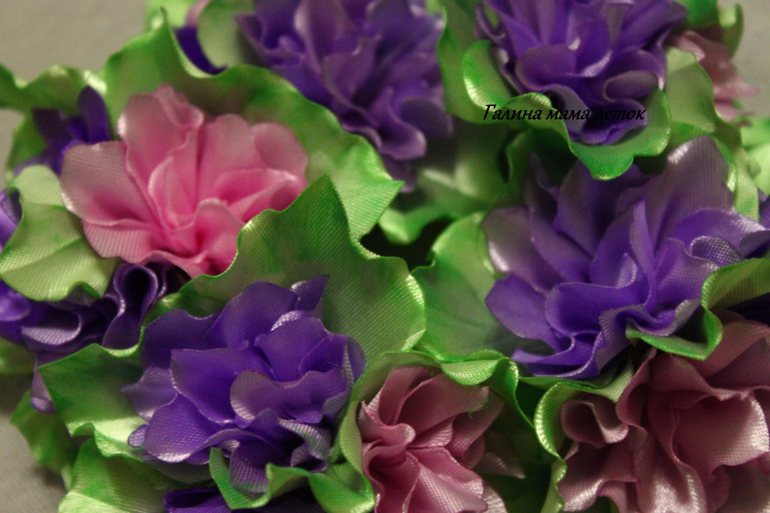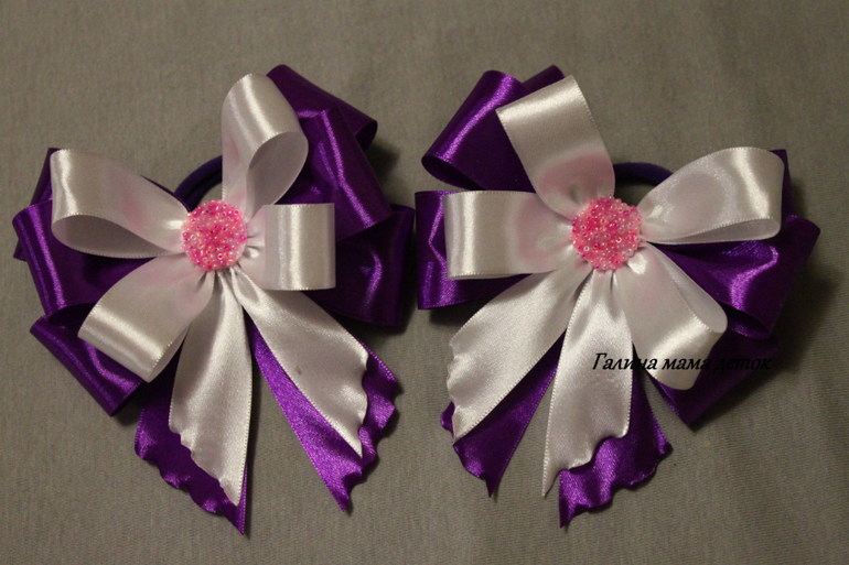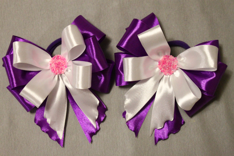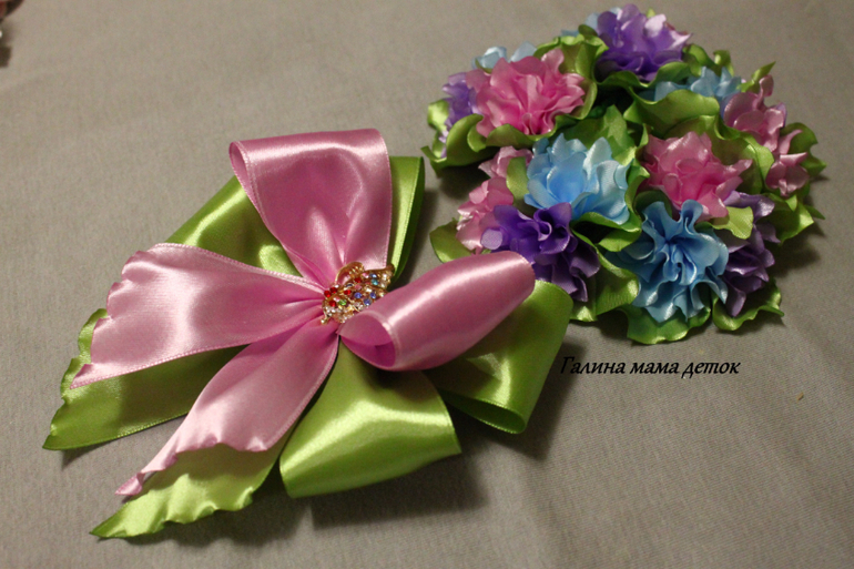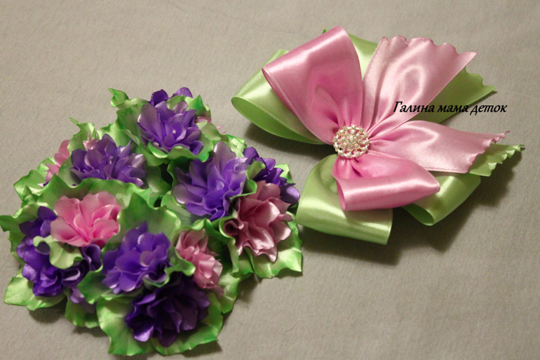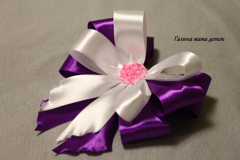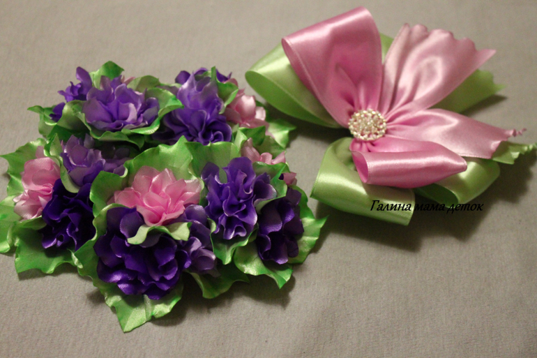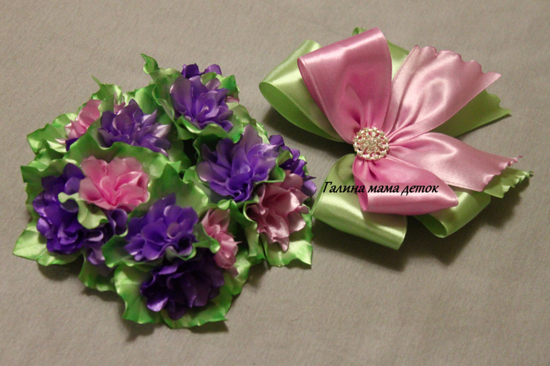 1. украшение на пучок розово-сиренево-фиолетовое.
