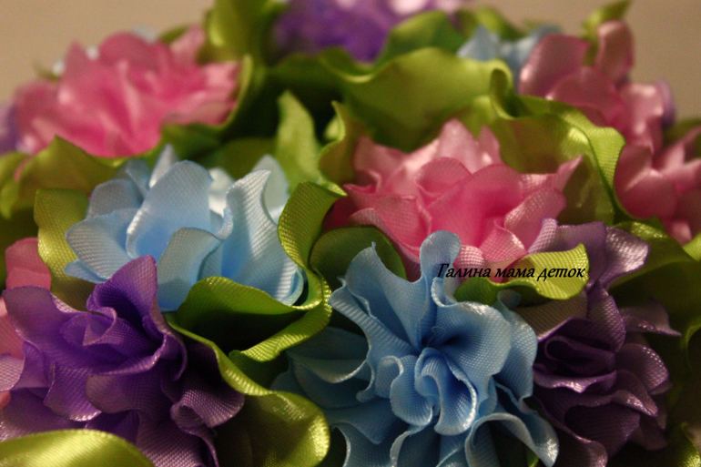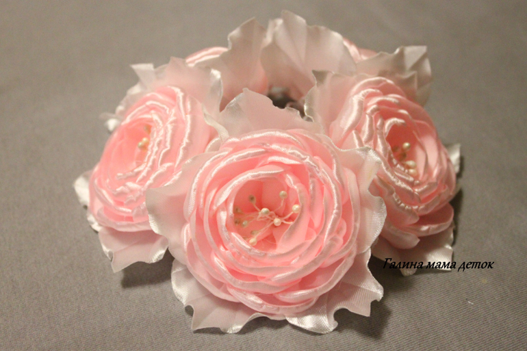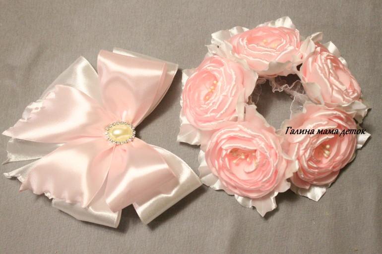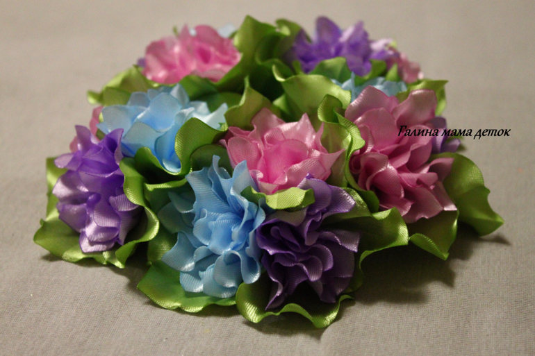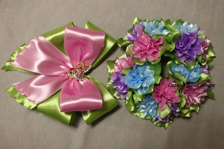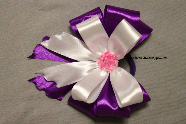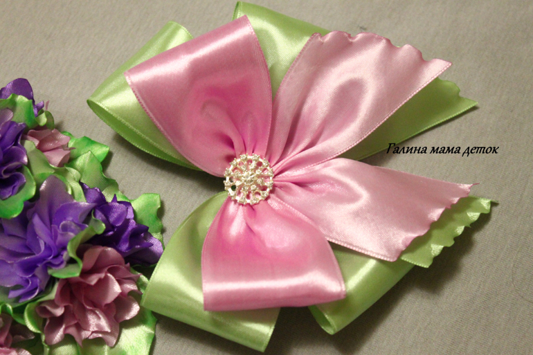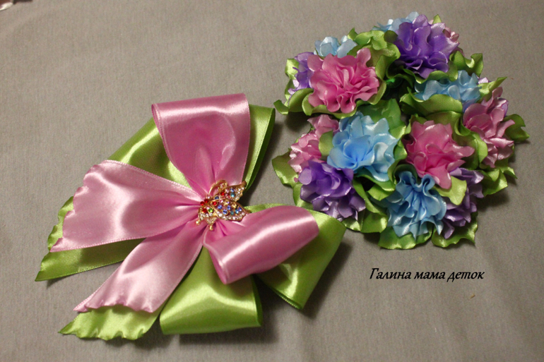 1. украшение на пучок розово-сиренево-фиолетовое.