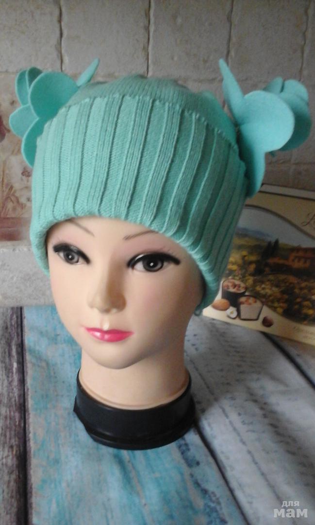 Эта нежно голубая шапочка связана для 3-х месячной малышки