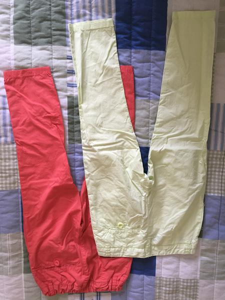 Легкие летние красивые брюки H&M, маркировка 104, но можно до 110 носить,сначала с подворотом (очень классно смотрятся), потом без. Цена указана за две пары. Коралловые одеты пару раз, лимонные ни разу, только постираны. Цвет в реальности чуть ярче.