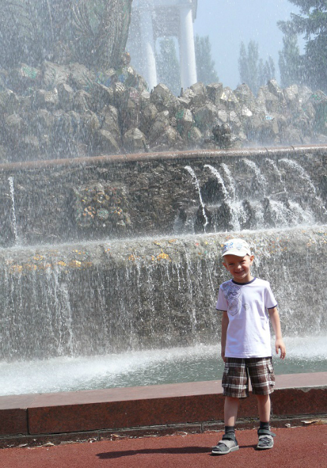 Так как мы особе не смотрим канал Карусель и всякие Береляки (надеюсь верно его обозвала) и прочие мишки-Тишки нас не привлекают, пошли дальше гулять по ВДНХ. Жара была жуткая и я предложила подойти к фонтану, Димке ну очень понравились эти маленькие брызги и решился подойти ближе - приятно освежившись прогулялись еще немного.