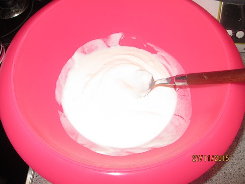 4. Взобьем два стакана густой сметаны и 0,5 стакана сахарной пудры.