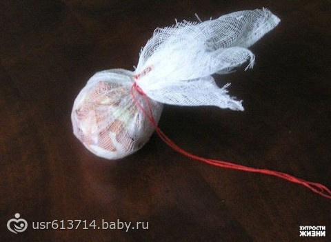 4. Марлю туго завязываем шаг, и аккуратно распределяем шелуху, где сместилась.