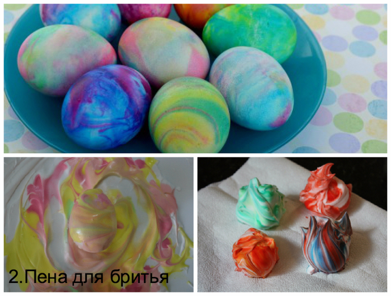 Берем плоское блюдо и выдавливаем пену .размазываем ее тонким слоем,примерно 0.7-1 см.сверху на пену капаем красители.Лучше не больше 2-4 цветов.Если красители жидкие,то это большой плюс!Они будет погуще ,чем сухие.Но я капала обычными сухими ,разведенными в соответствии с инструкцией (вода+уксус).Зубочисткой делаем узоры и валяем наше яйцо по тарелке. Внимание! Одним яйцом проходимся по тарелке один раз.Второй раз одно и тоже место не красим. Оставляем примерно на 10 минут.Далее аккуратно промахиваем яичко салфеткой.Получается по-космически нежно ;)