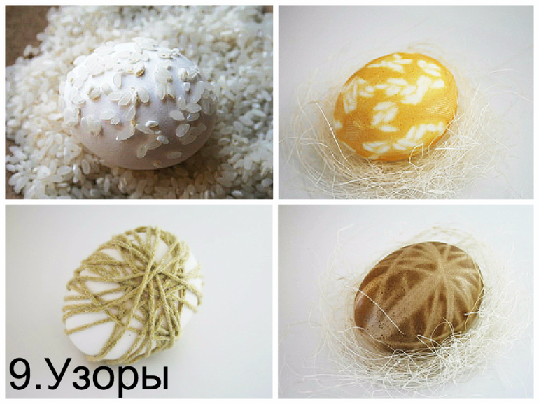 Узоры из крупы.Смачиваем яйцо в холодной воде и обваливаем в рисовой крупе ,овсяных хлопьях .