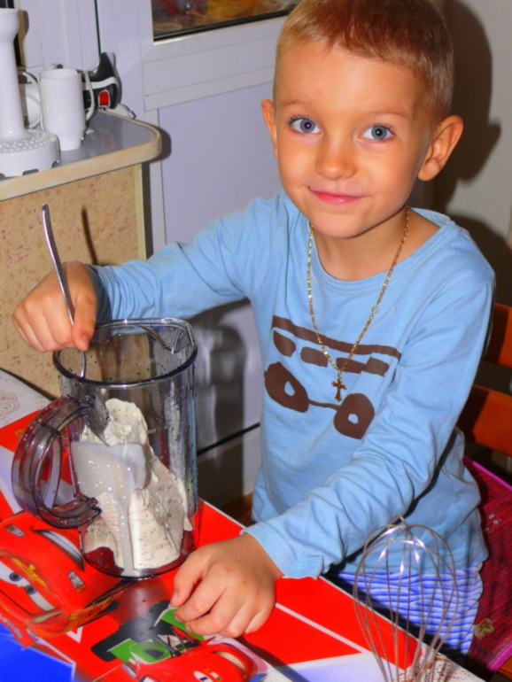 Опять Димка справился сам - благодаря высокому стакану с мерками - ни чего не разбрызгалось!