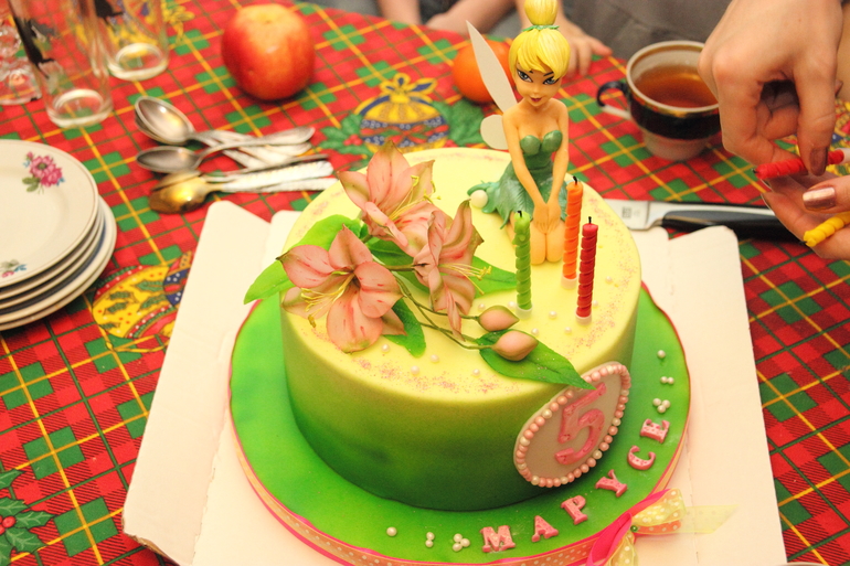 Так как такой торт мы заказываем впервые, то практически все легло на плечи Юлечки: и содержание, и оформление, я полностью доверилась вкусу мастера, о чем ни капли не пожалела. Мое пожелание по оформлению сводилось к только тому, что нужна непременно фея Динь-Динь. Я честно говоря, конечно же, очень переживала, что мы получим в итоге. Очень боялась, что феечка может получиться страшненькой, всяких насмотрелась в интернете. Боялась, что тортик может не вынести долгой дороги. Но все мои переживания были напрасны! Торт, отлично упакованный заботливыми руками мастера, прибыл к нам в целости и сохранности!