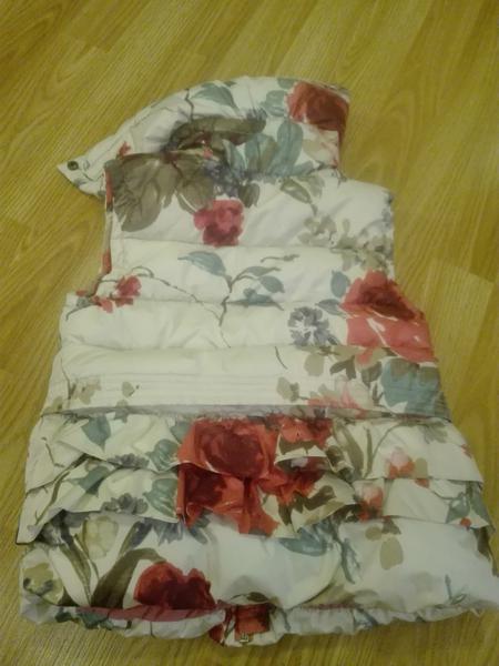 Размер жилетки 122,но если на куртку,то маломерит, очень редко надевали, 1500 р