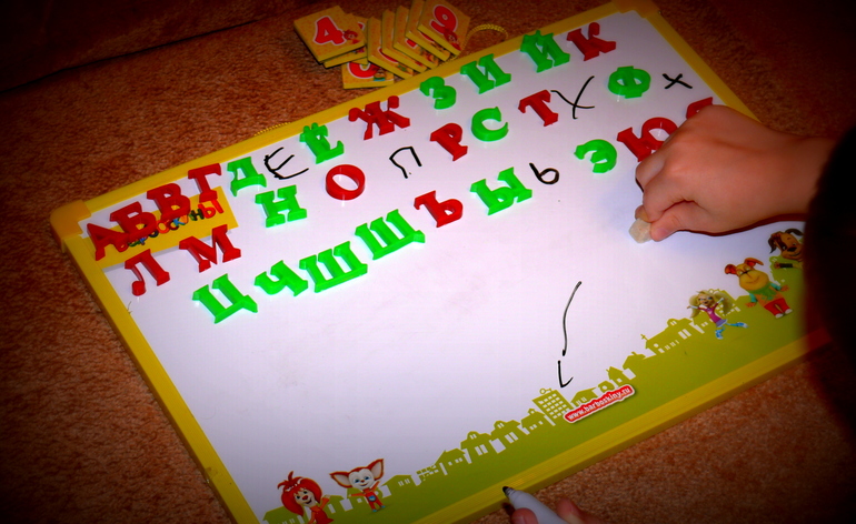 Вот например я придумала такое занятие, для отличного познания русского алфавита - (английский мы, кстати, выучили раньше русского).