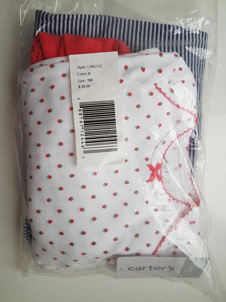 Размер 3 месяца. На белом бодике маленькие клубнички.