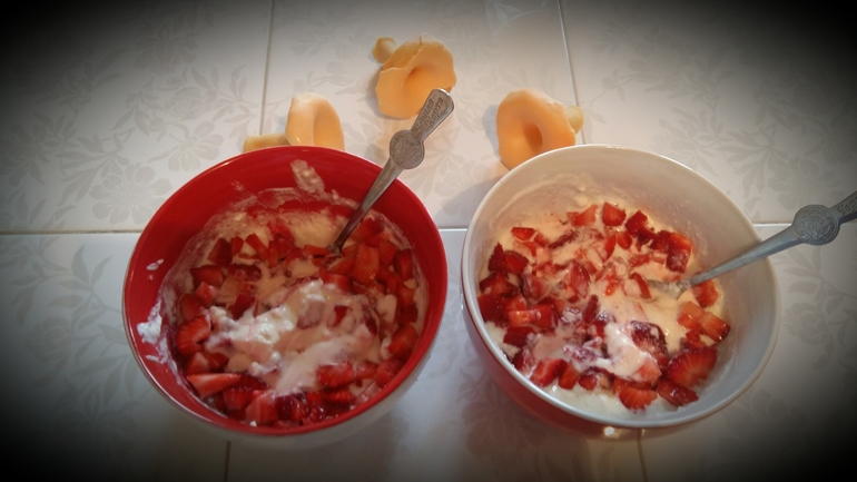 Каждую пятницу покупаю творог на развес жирный с прослойкой сливок. И клубники лоток. и такая вкусняшка, даже наш папа ест, что ему не свойственно.