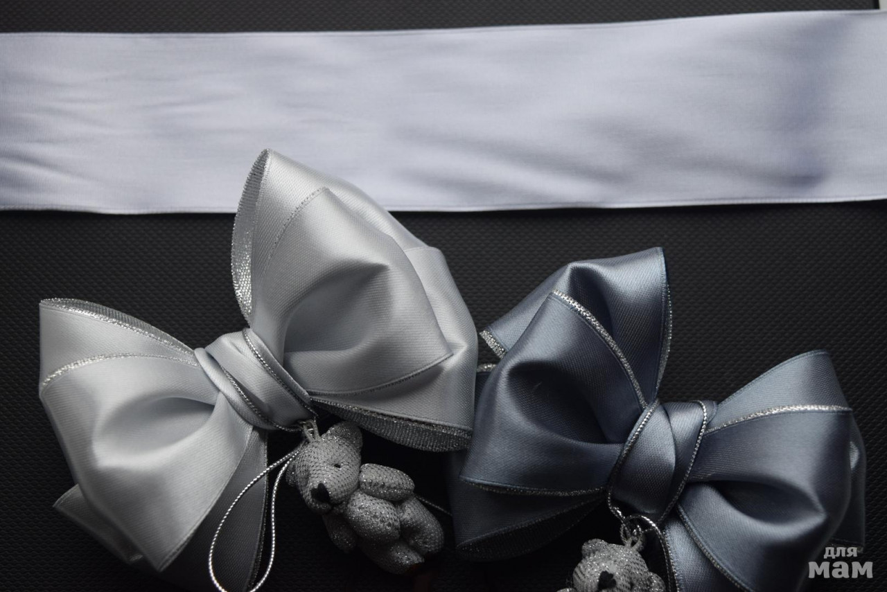 Девочки, пристрою СЕРЫЙ бант с мишкой на заколке "автомат". Тут на фото бант стальной и с доп. декором!