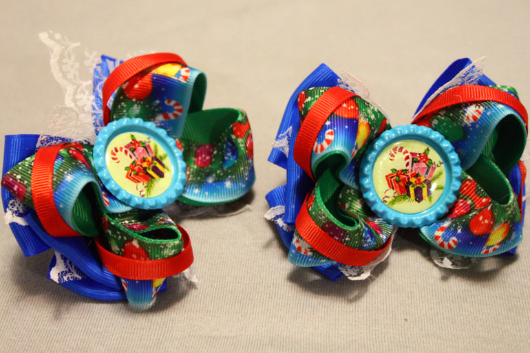 Покажу еще две пары новогодних бантиков: