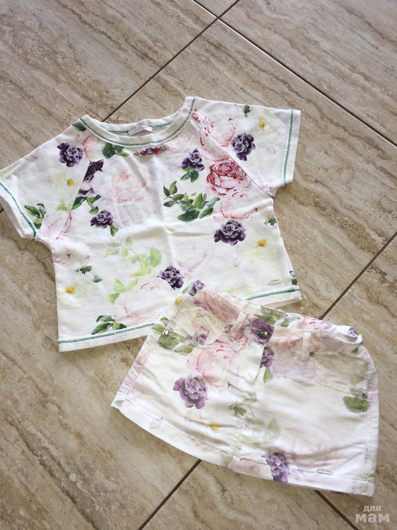Продам юбка и футболка актуальная коллекция , в отличном состоянии , все камни на месте , в юбке есть утяжка резинка , немного маломерит на рост 105-112 будет отлично , хлопок , цена 2500